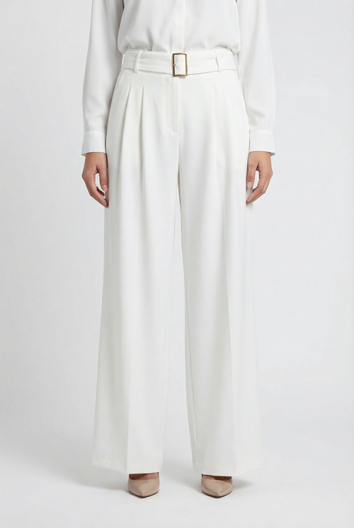 Belted High-Waist Wide-Leg Trousers