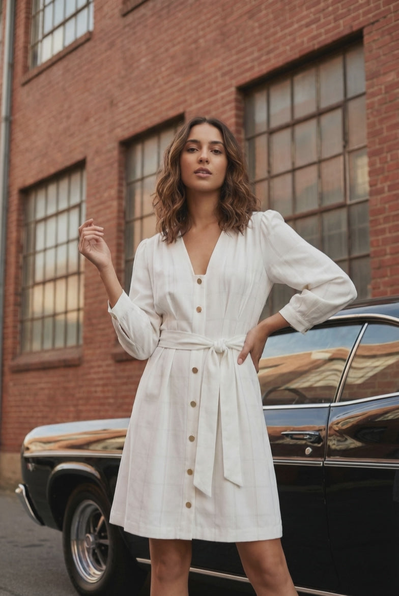 Button-Down Tie-Waist Mini Dress